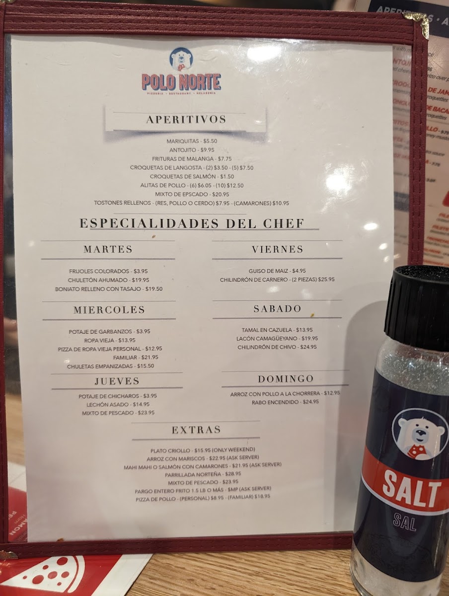 Welcome to Polo Norte Hialeah, a hidden gem located at 2050 W 56th St, Hialeah, FL. This beloved eatery is revered for its mouthwatering comfort food that evokes nostalgia and warmth. With daily specials like Ensalada De Aguacate and Boniato Relleno Con Tasajo, guests can indulge in authentic Latin flavors. The menu doesn't stop there; options like the Ribeye Steak and Chuleton Ahumado are simply irresistible.